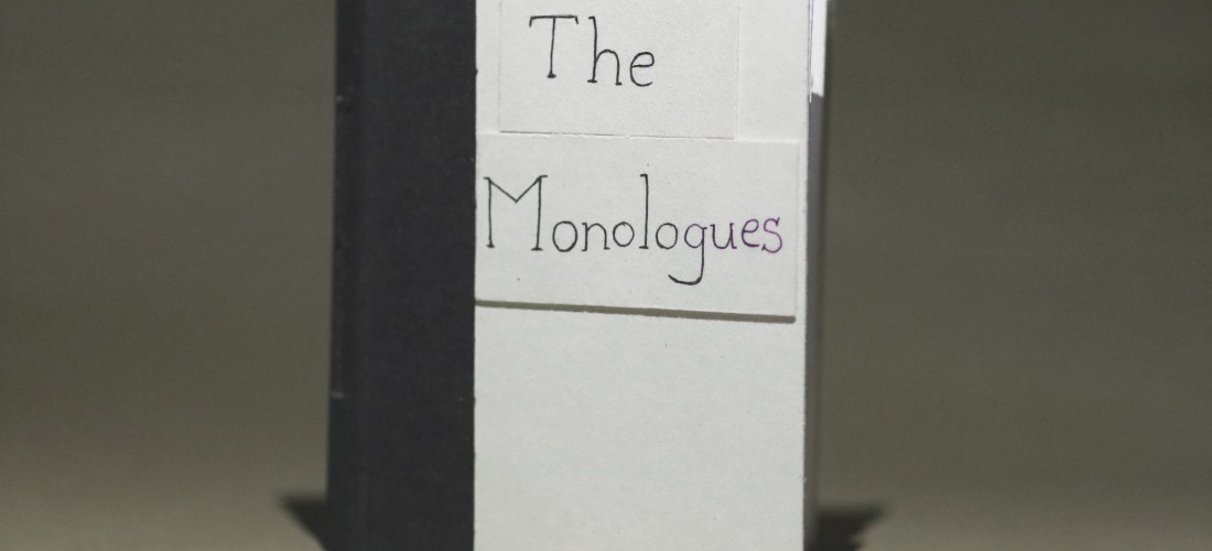The Monologues is a book created for a performance pice called “The Monologues”, a collaborative monologue presentation of texts written by queer individuals.