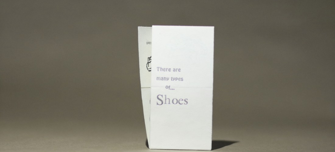 There are many types of… Shoes is a flexagon where different styles of shoes are display. It uses the principle of clothes and accessories being able to describe a style. The piece talks into a deeper reality that even if it can tell something about an individual it cannot define it, just like with gender.